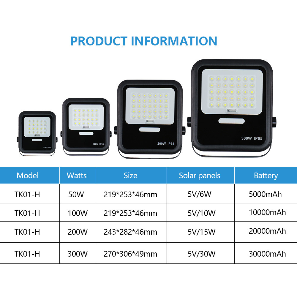 | TK01-H 300W | 3.2V 30AH | 5V/6V 30W | 6-8 ore | ABS | SMD 2835 |